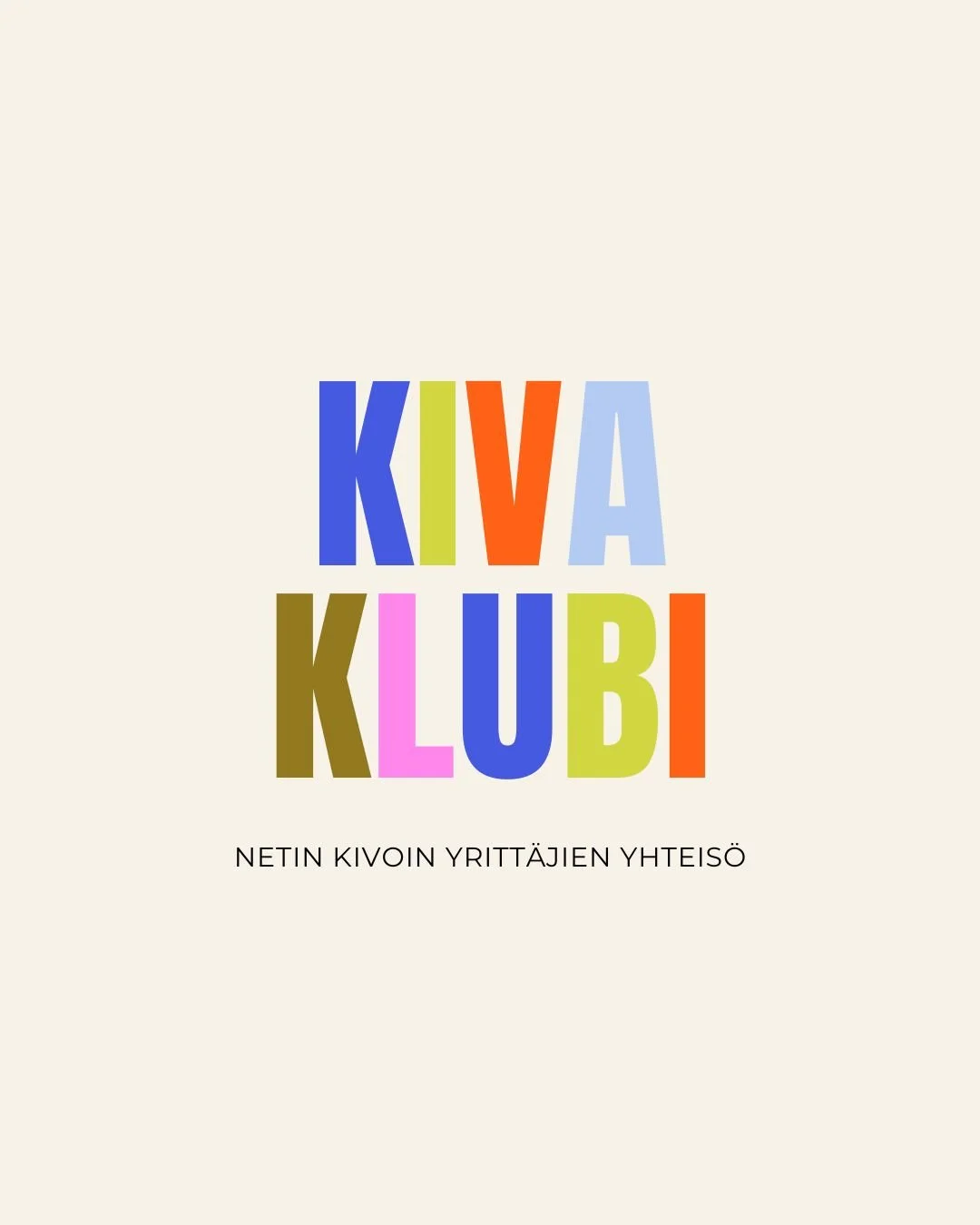 "Kiva Klubi" logo tekstillä "Netin kivoin yrittäjien yhteisö" vaalealla taustalla.
