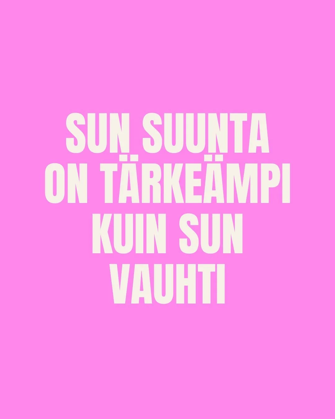 Kuvassa on vaaleanpunaisella taustalla valkoisella tekstillä kirjoitettu lause: "Sun suunta on tärkeämpi kuin sun vauhti".